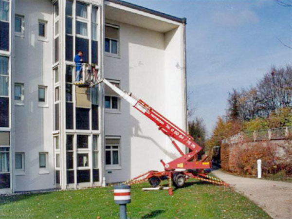 Der typische Einsatzzweck sind Fassaden-, Dach- und Gaubenarbeiten, Fensterreinigung, Maler- und Baumarbeiten sowie Wartungsarbeiten im Innenbereich.